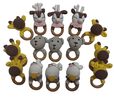 סיטונאי טבעי עץ תינוק צעצועי כותנה סרוגה בעלי החיים טבעת תינוק בעבודת יד רעשן Teether
